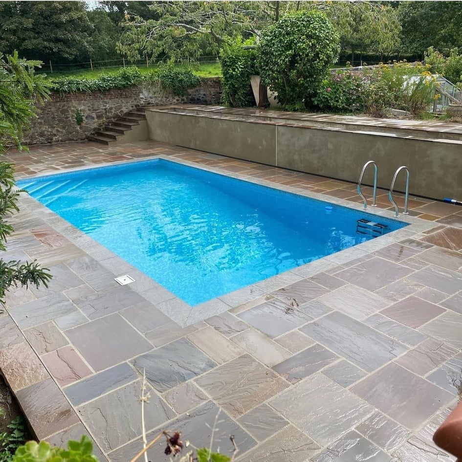 Installation of an 8m x 4m Outdoor Pool with straight sides and internal corner steps